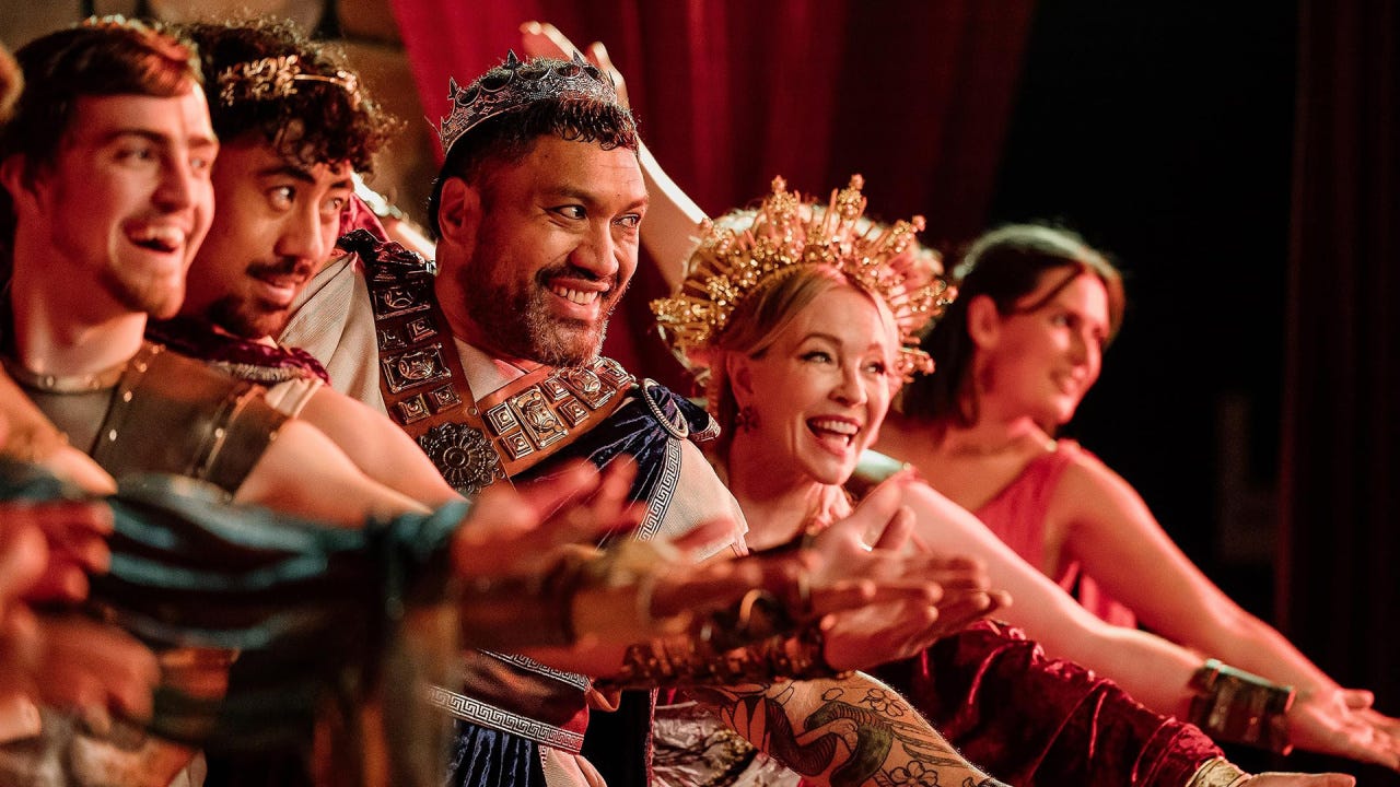 Sometimes you just need a joy bomb tossed into the tempest of today’s world. That’s exactly what Luke Di Somma and Kip Chapman’s delightful musical theatre salute/send-up offers. An ace Harry McNaughton plays a Broadway wannabe sent packing back to small-town Aotearoa after an unfortunate incident with Sally Field, pressed into directing a jazz hands-up show based on the Iliad. A blooming ray of sunshine and silliness.